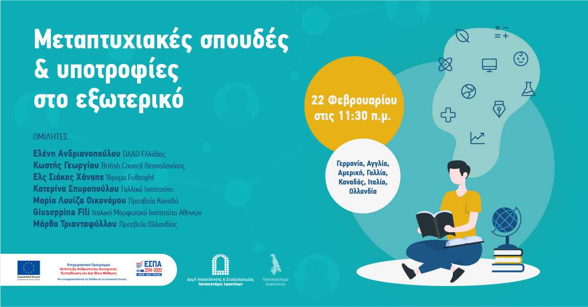 Διαδικτυακή Εκδήλωση: Μεταπτυχιακές Σπουδές & Υποτροφίες στο εξωτερικό (22/02/2022) από Γραμματεία Τμήματος Φιλολογίας | 16 Φεβ 2022 | Γενικές | 0 ΣχόλιαΠληροφορίες στα συνημμένα αρχεία.Πληροφορίες ΑνακοίνωσηςΣυντάκτης: ΓραμματείαΣημαντική ημερομηνία: 22 Φεβρουαρίου 2022Σχετικοί σύνδεσμοι: https://forms.gle/uuVT619cTzhvjAhW9https://bit.ly/3gibBYPΣχετικά αρχεία:final-anakoinosi-ekdilosis-metaptychiakes-spoydes-kai-ypotrofies-exoteriko.pdffinal-programma-ekdilosis-mtch-uoiv.pdfmetaptychiakes-spoydes-afisa.jpg